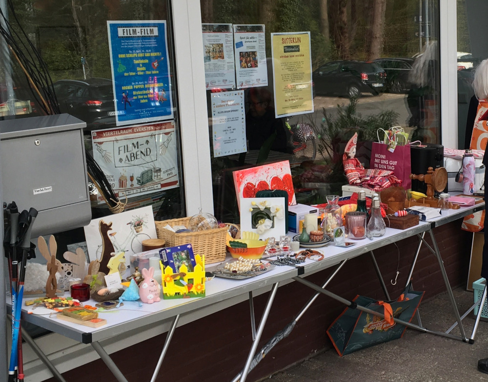 Parallel zum Sonntagskaffee gab es den „etwas anderen Flohmarkt“: gegen Spende an den Viertelraum konnte kräftig „getrödelt“ werden. Viele fleissige Hände waren zur Stelle, um die Stände zu betreuen und Kaffee, Tee und Kuchen zu verteilen. Das Wetter war gut und so gab es viel zu stöbern und zu staunen – ein voller Erfolg. Ganz…
