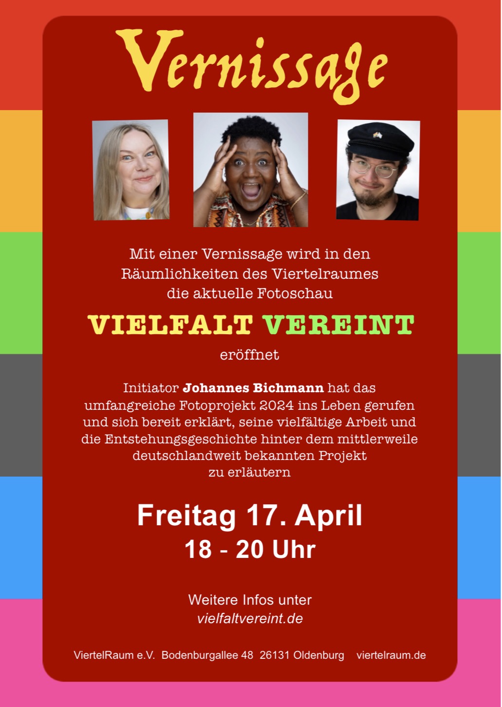 Am Freitag den 17. April findet im Viertelraum die Vernissage des Projekts VIELFALT VEREINT statt.